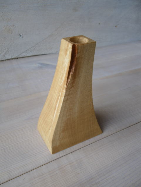 | 一輪挿し 04 ■高さ155㎜ ■楓材 ■オイル仕上 ■¥4,200(税込) ■中にガラス管が入っています。 |